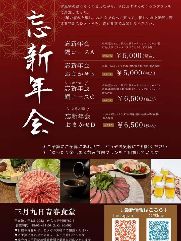 #三月九日青春食堂 #佐久グルメ #忘年会 #新年会 #古民家食堂 #宴会 #貸切 #和食 #地元食材 #青春食堂