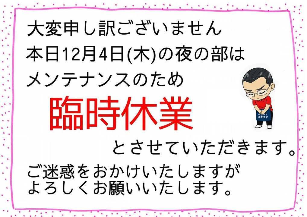店内メンテナンスのため 臨時休業 とさせていただきます。