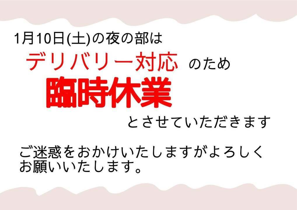 デリバリー対応のため臨時休業 となります。