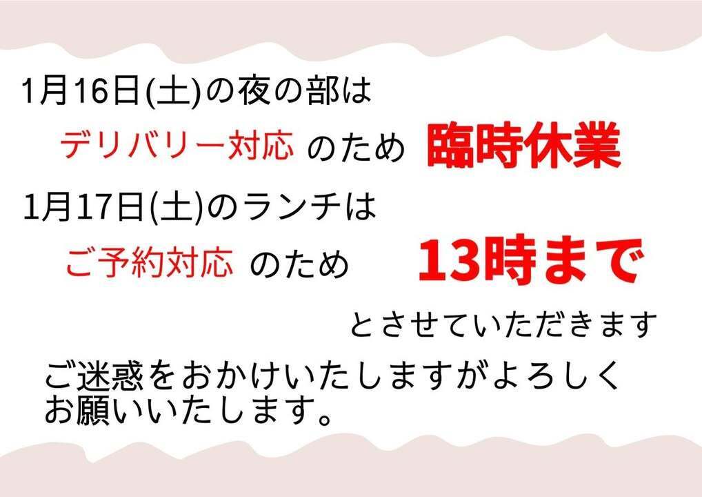 13時まで の営業となります。