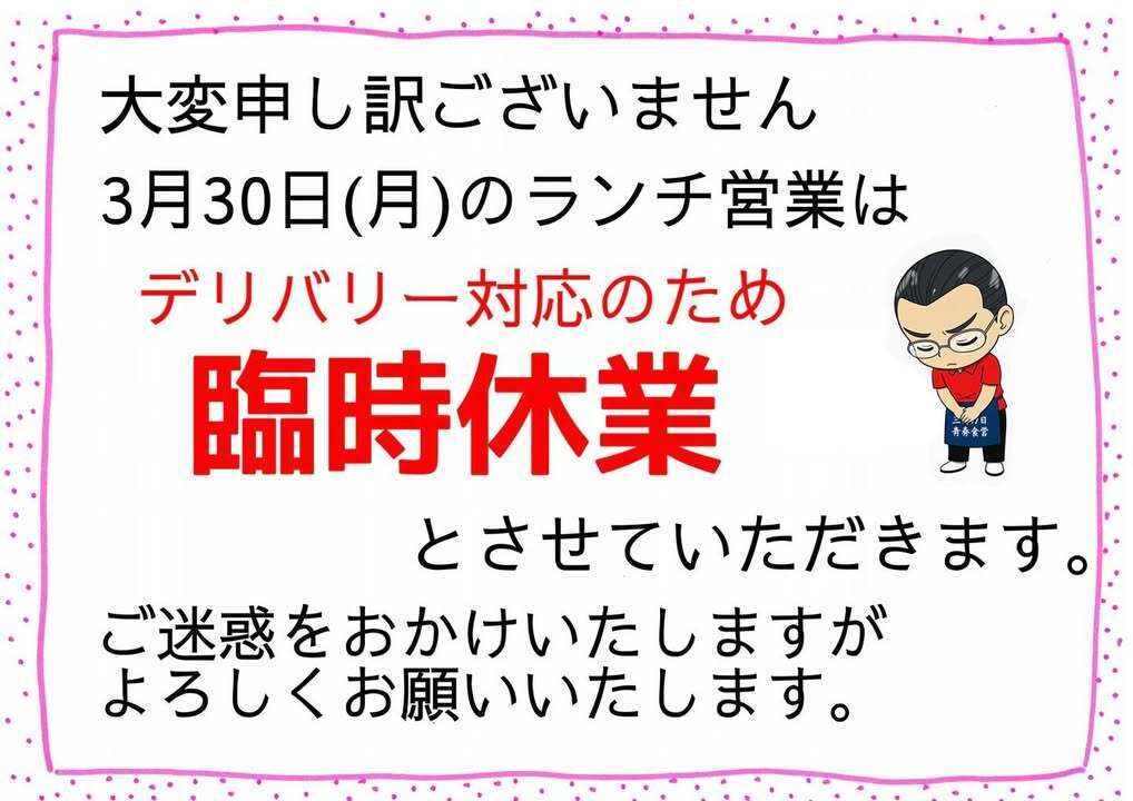 3月30日(月)のランチ営業は、